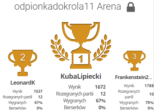 Zapraszamy wszystkich chętnych do udziału w szesnastej edycji internetowego turnieju szachowego. Zagramy systemem szwajcarskim na dystansie 5 rund tempem 7 minut + 7 sekund na zawodnika. Kiedy? 11.07.2020 r. (sobota), godz. 10:00. Gdzie? https://lichess.org/swiss/mKPWwC4h Warunek uczestnictwa? Członkostwo w klubie: https://lichess.org/team/szkoa-szachowa-od-pionka-do-krola Do zobaczenia w sobotę